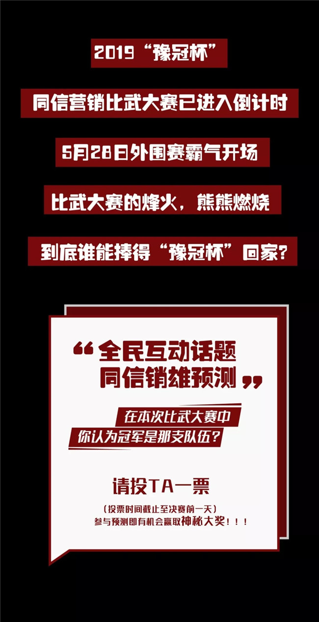 2019“豫冠杯”同信營銷比武大賽重磅來襲 點擊原文參與預(yù)測