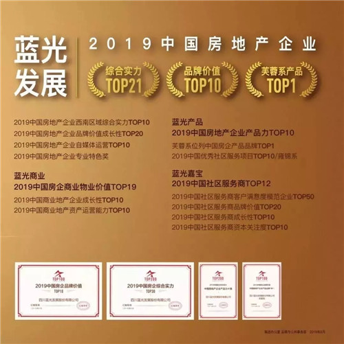 2019年,中國房地產(chǎn)百強綜合實力第21位;百強房企成長性第4位;中國十大最具投資價值上市房企第4名。藍光發(fā)展29年戰(zhàn)略布局,以五大產(chǎn)品系深入全國百余座城市,發(fā)掘城市精神,熔鑄中式厚韻。